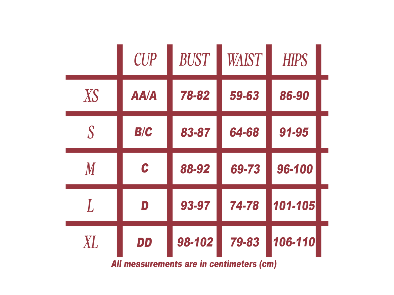 *Wear no bra or an unpadded bra when measuring